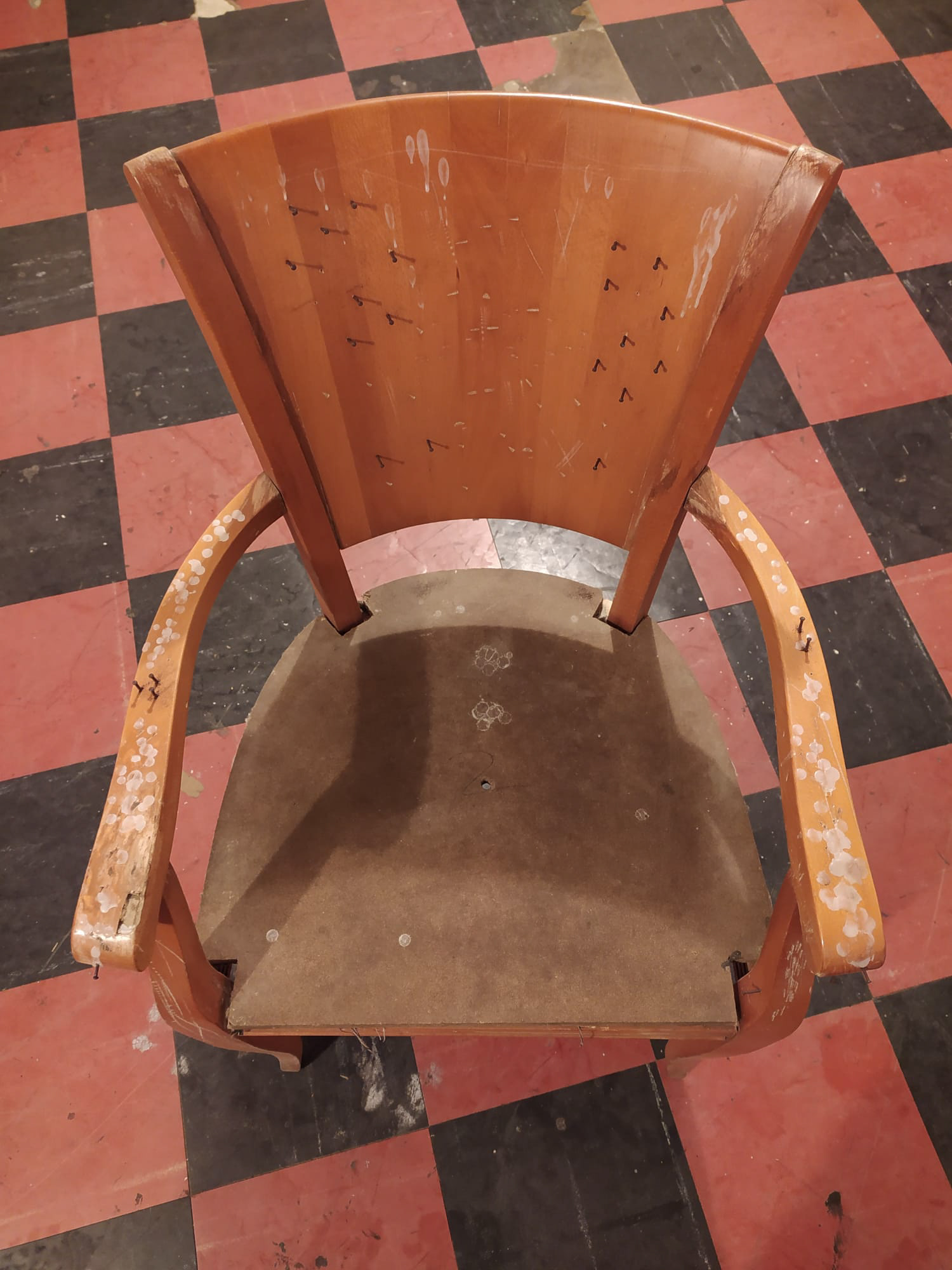 To increase the embodiment, the viewer could chain himself to a designated chair. The chair was used in the filming and was later designed to look like it was taken from a harsh investigation- nails were hammered in, candle wax was all over, and scratches were carved on the armrests. While watching the film and making decisions- the viewer can see both his armrests and the in-film armrests. The other reason for that shackling is to keep the viewer in one place, so the eye-tracking camera will not lose sight.